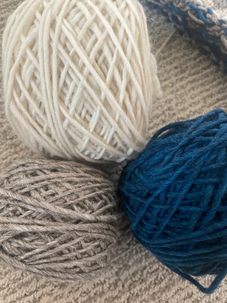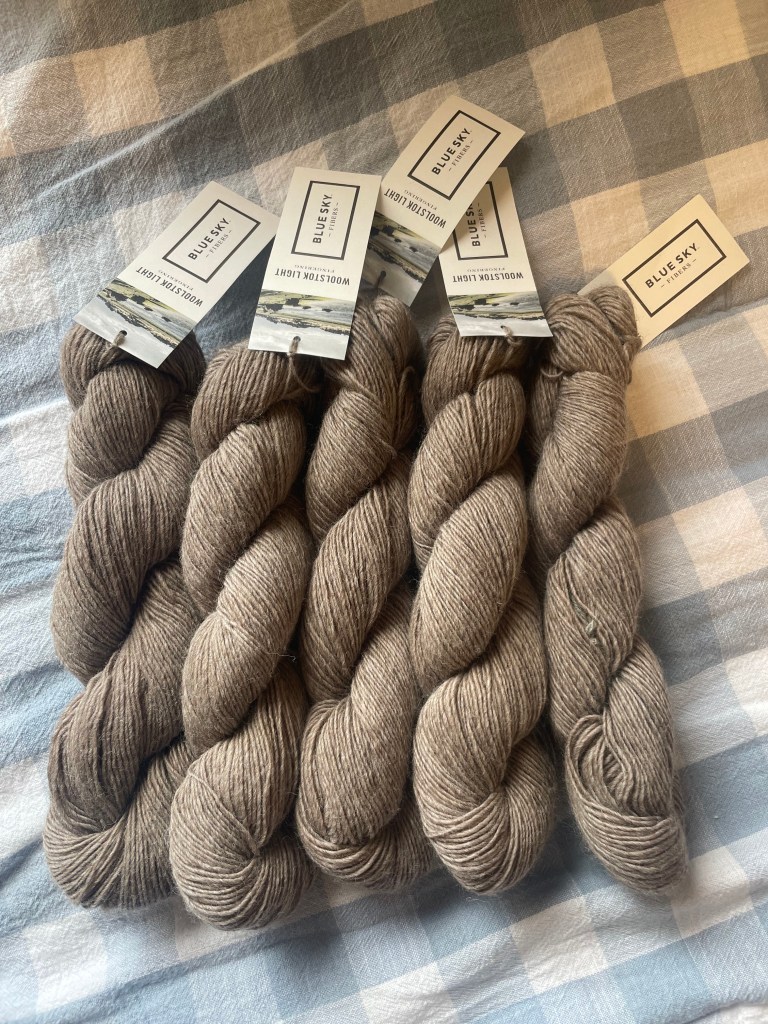 I also picked up a second yarn to hold with it, from Blue Sky Fibers. In total I grabbed 5 skeins of their Woolstok light fingering weight, 100% fine highland wool yarn in color 2302 Gravel Road. The combination was perfect, fluffy and soft with just enough weight to knit on US 7 needles.