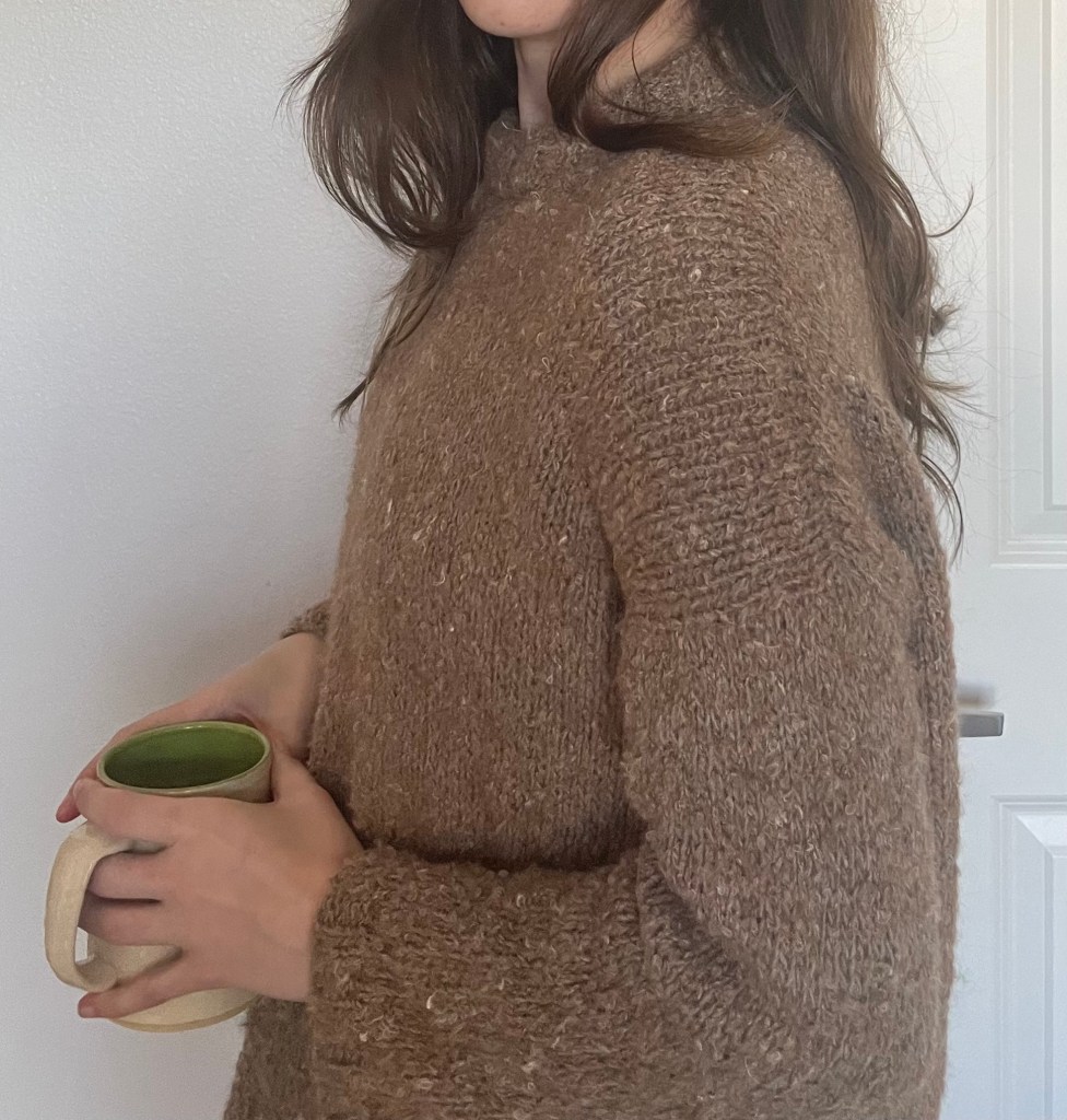 I found a couple boucle patterns after searching Ravelry and Reddit, settling on Sweater No.24 from My Favorite Things Knitwear. This was the perfect pattern to make a comfy, oversized sweater. My only modification was doing 2×2 rib along the edges, instead of 1×1, which I felt made the boucle texture really stand out.