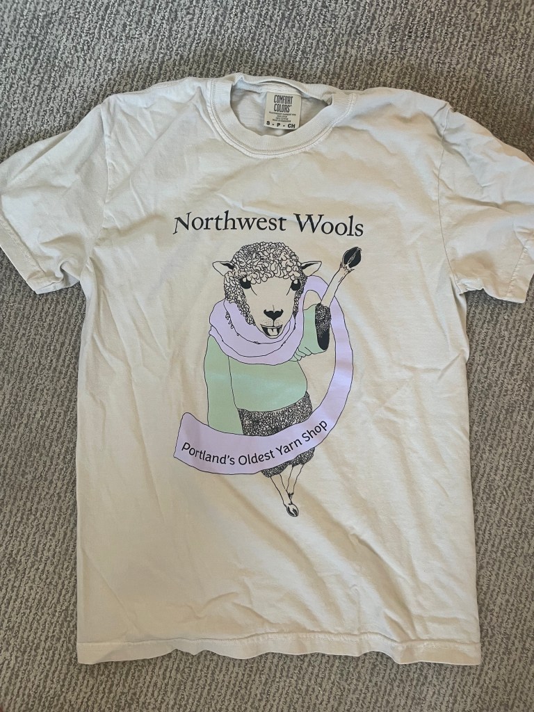 On the way back into Portland, we took a slight detour through Multnomah Village. It was a quiet, walkable neighborhood that feels like its own little town. That’s where we found Northwest Wools, which is the oldest yarn store in Oregon. I did a few laps around the shop and finally settled on a boucle yarn, a texture that I’d never knit with before. It came from a local yarn brand in Oregon, Shaggy Bear Farms. I also couldn’t resist picking up a Northwest Wools T-shirt too with their sheep logo, I’ve worn it way more than I thought I would!